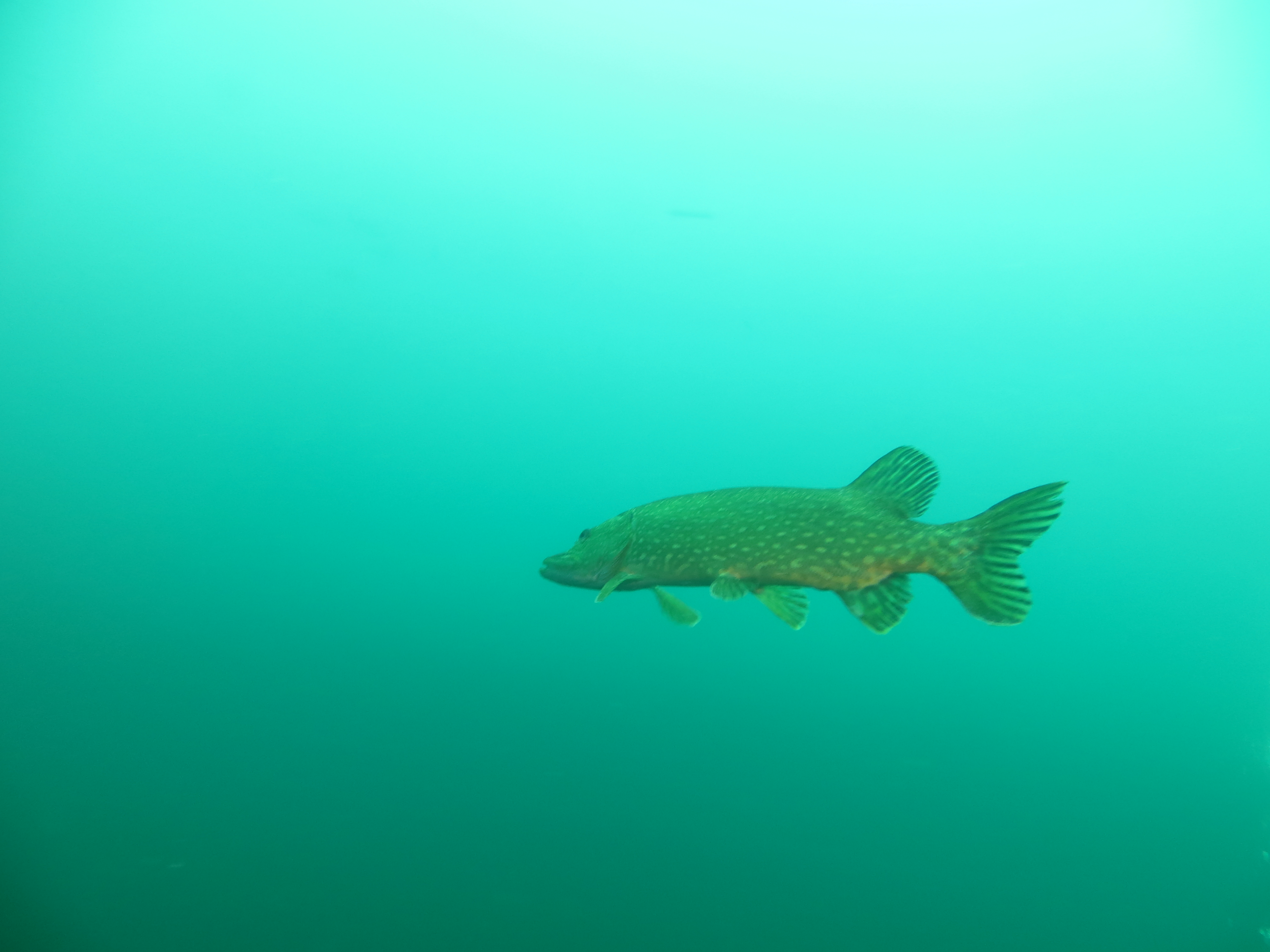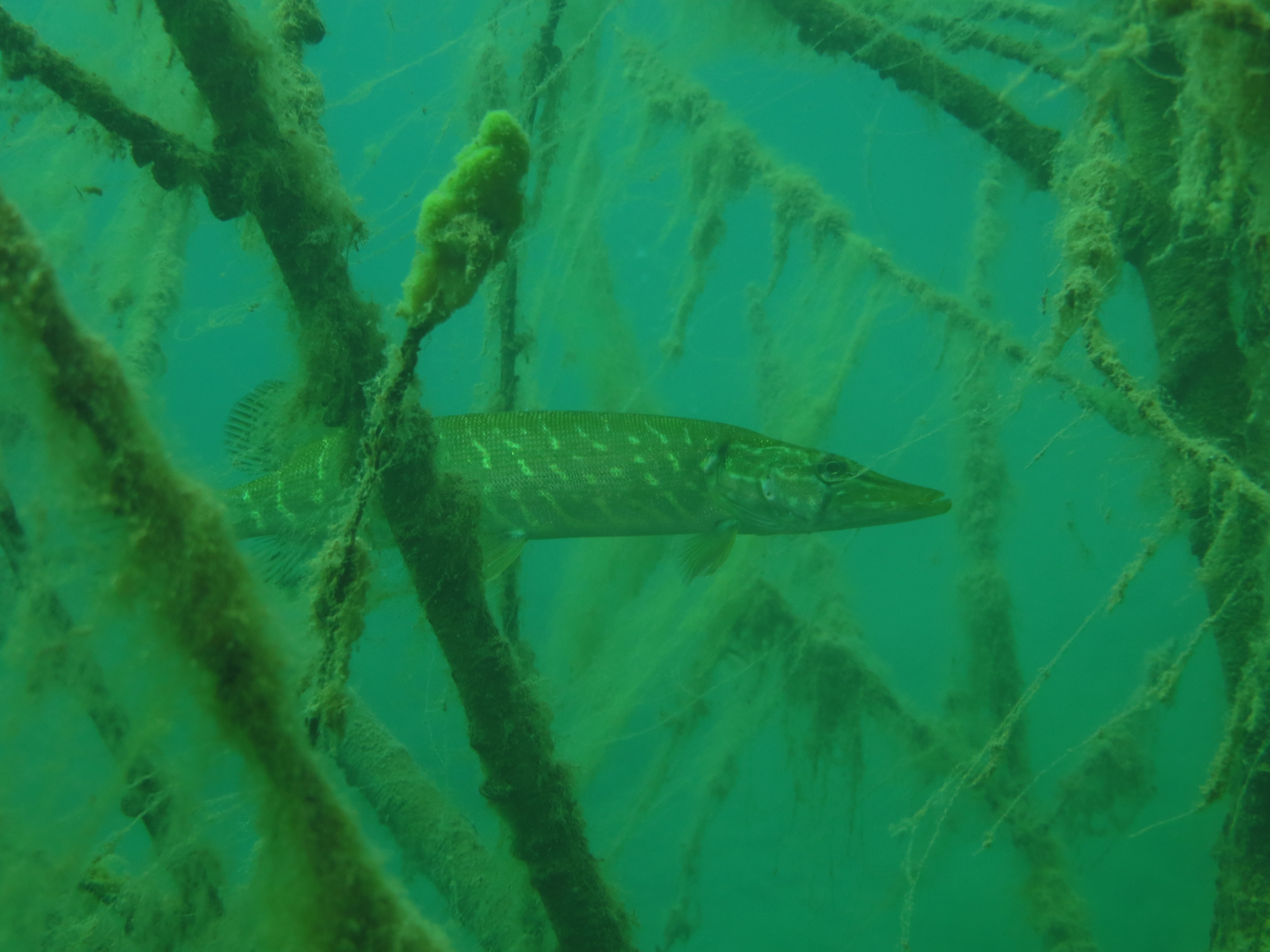 Hechte gab es ohne Ende, auch Karpfen zogen, teils in größeren Gruppen, durch die Gewässer und haben sich durch die Taucher in keinster Weise scheu machen lassen.
